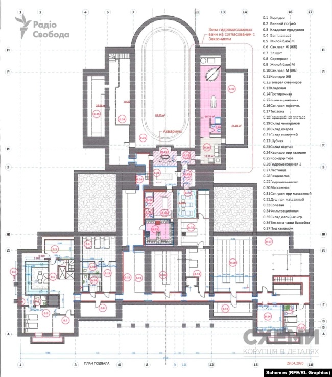 Згідно з цими документами, приміщення тут відведені, зокрема, під шубосховище, сервізну, склади картин та суконь, секретну кімнату тощо. Медведчук на запит журналістів не відповів.