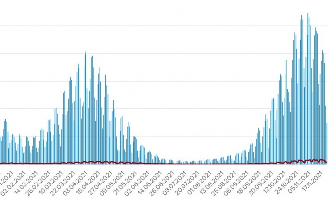 За добу 21 листопада в Україні зафіксували 7 464 випадки коронавірусної хвороби і 326 летальних випадків від неї, госпіталізували з Covid-19 чи підозрою на нього 2 501 особу, одужали 10 540 осіб.
