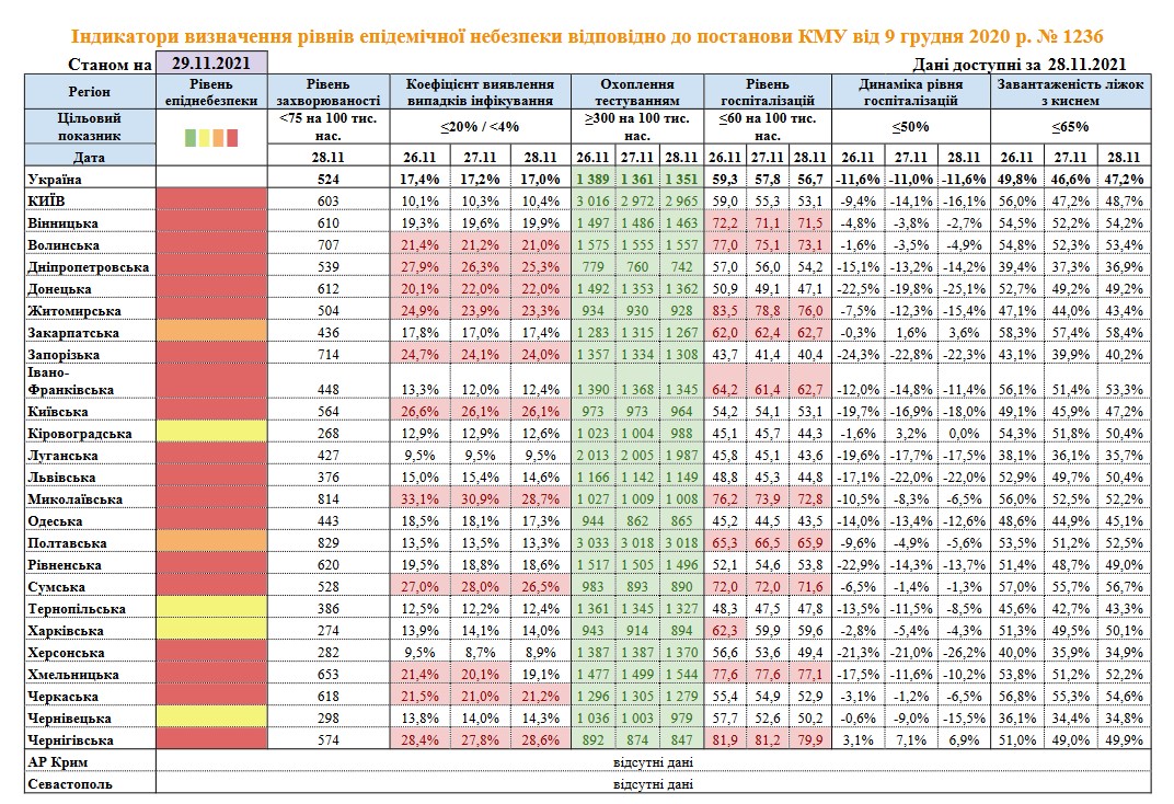 Деталі: Згідно з таблицею МОЗ, у цих регіонах до норми опустилися такі показники: