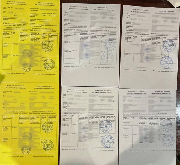 - 25 підроблених свідоцтв про ковід-вакцинацію;