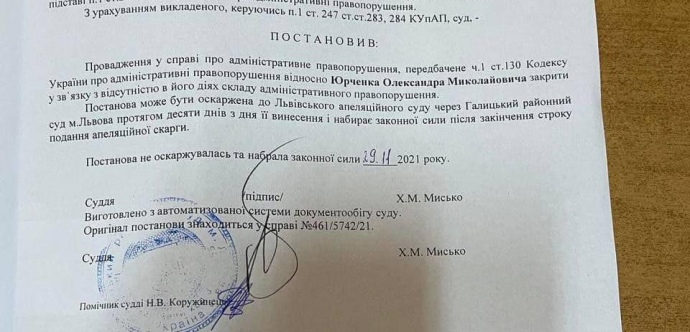 В решті решт, суд дійшов висновку, що в діях Юрченка немає складу адміністративного правопорушення, і справу закрив.