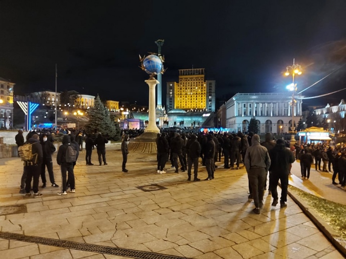 Біля Головпоштамту в районі Хрещатику збираються молодики в масках.