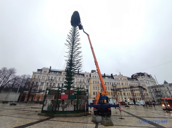 У Києві почали встановлювати новорічну ялинку з декораціями