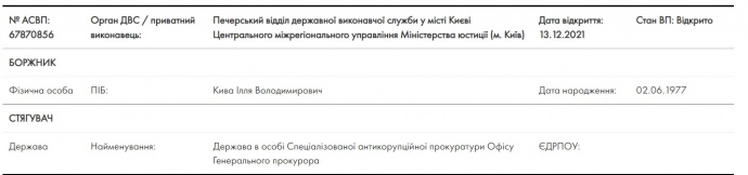 Деталі: Виконавче провадження щодо стягнення з Киви грошей в дохід держави зареєстроване 13 грудня.