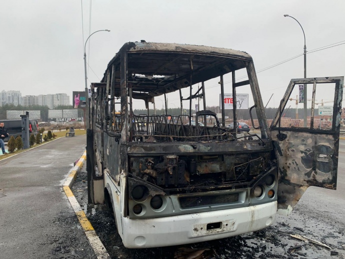 Поліцейські встановлюють обставини загоряння маршрутного автобуса в Ірпені.