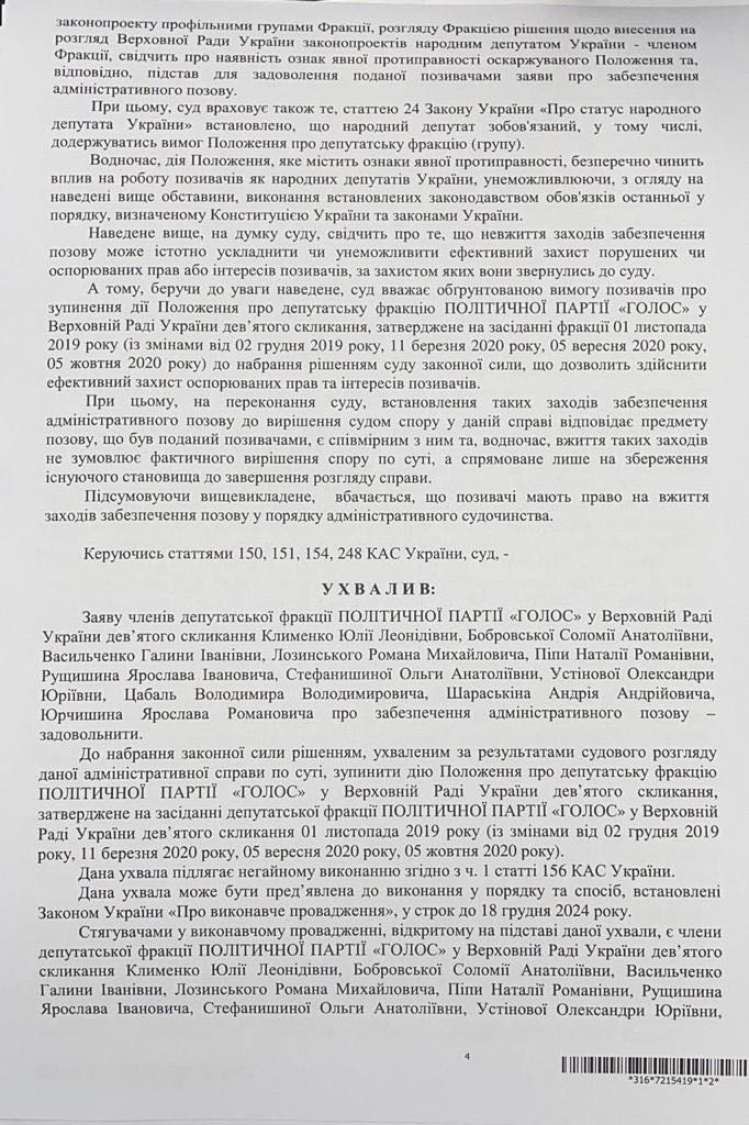 Нардеп зазначив, що нардепи з групи "Солідарність" подали позов до ОАСК проти своїх колег з "Голосу" щодо визнання протиправним та нечинним положення про депутатську фракцію. Суд підтримав цей позов.