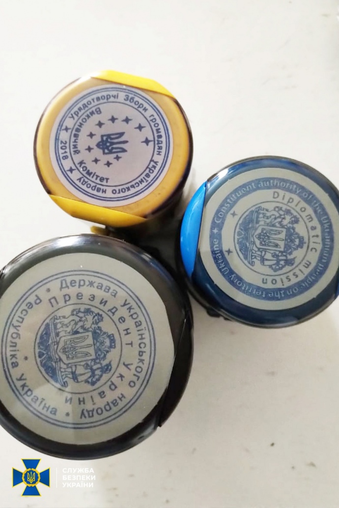 У ході обшуку вдома у затриманого вилучено печатки й бланки фейкових псевдоутворень, комп’ютерну техніку та мобільні телефони із доказами протиправної діяльності, "фейкові" розпорядження самопроголошених органів влади та "дипломатичні паспорти" "високопосадовців".