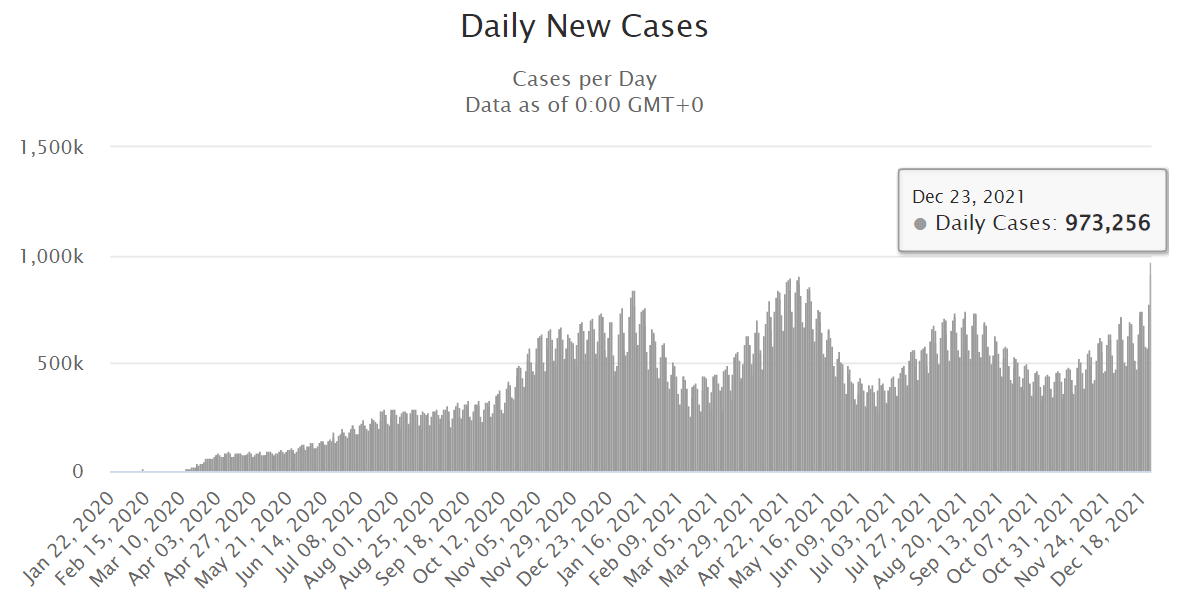 За добу 22 грудня у світі виявили 973 256 нових випадків коронавірусу – це найбільший щоденний приріст за час пандемії.