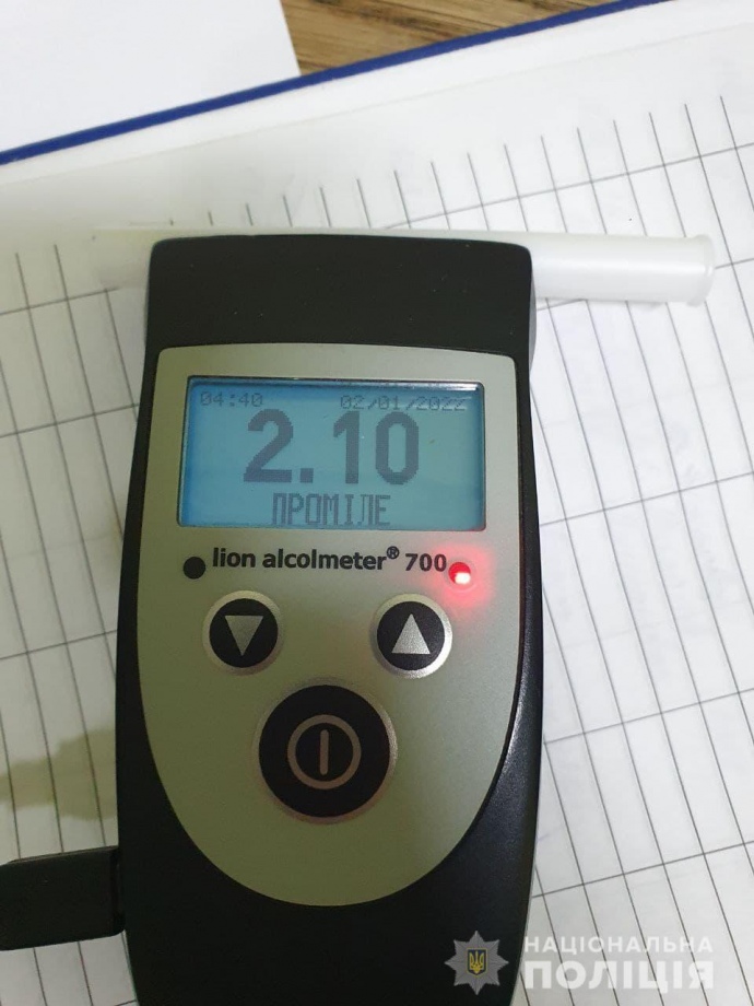 "І пасажир, і керманич поводили себе агресивно, тож до них застосували спецзасіб кайданки. Огляд водія на стан сп’яніння показав, що 24-річний житель села Бармаки, що неподалік Рівного, керував авто нетверезим — 2,10 проміле алкоголю", — повідомили в поліції.