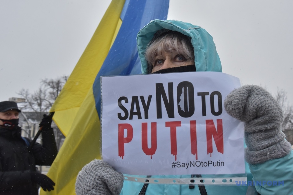 На Михайлівській площі у столиці відбулася акція "Скажи Путіну - ні", її організували напередодні перемовин Заходу з Росією щодо ситуації навколо України.