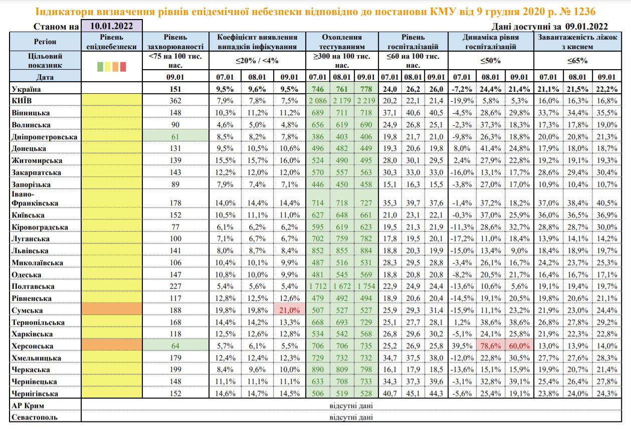 Деталі: У Сумській та Херсонській областях станом на 10 січня встановлено помаранчевий рівень епіднебезпеки, решта областей залишаються у жовтій зоні.