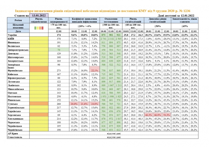 Деталі: В порівнянні з минулими днями, до Сумської та Херсонської області додалася Івано-Франківська. 12 січня там було зафіксовано перевищення коефіцієнту виявлення випадків інфікування – 22,1 %.