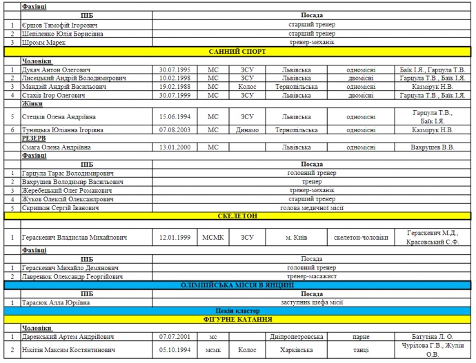 НОК оприлюднив склад збірної на Олімпійські ігри у Пекіні