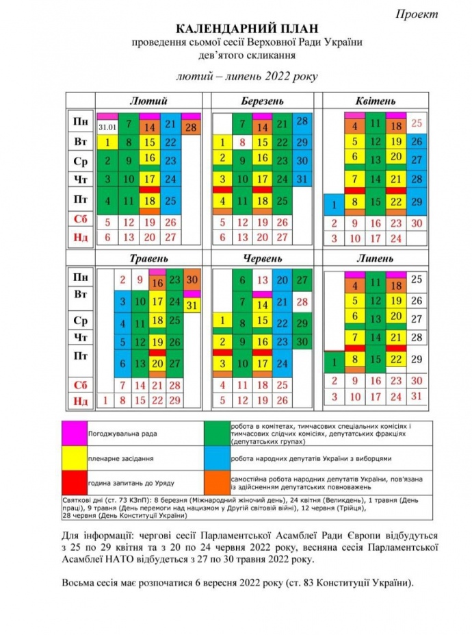 Сьома парламентська сесія триватиме з 1 лютого до 22 липня 2022 року.