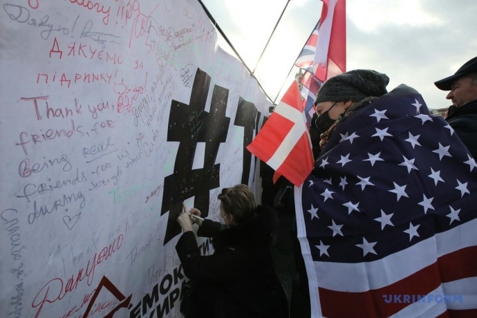 У Києві на Майдані Незалежності пройшла акція подяки західним партнерам, які надали Україні озброєння та іншу допомогу на тлі зростання російської агресії.