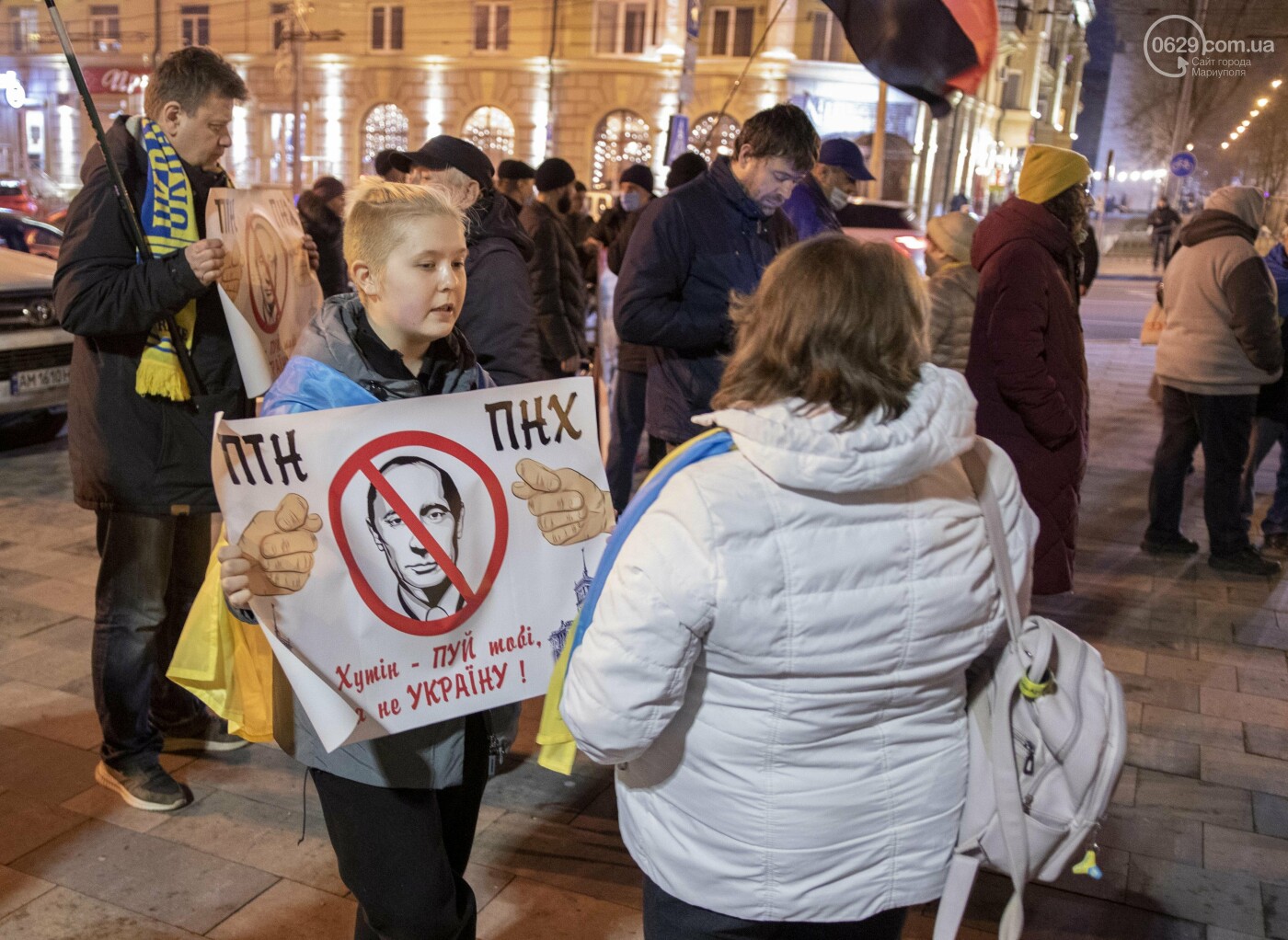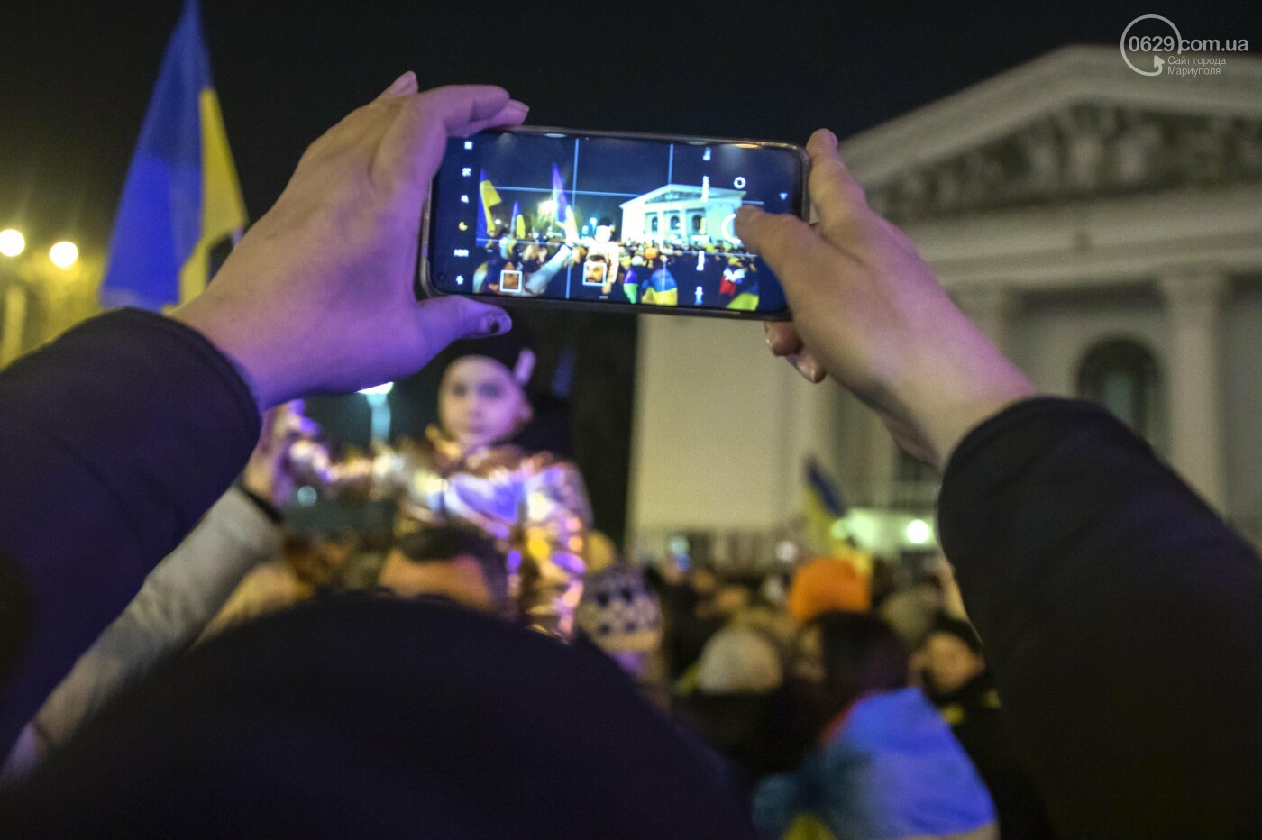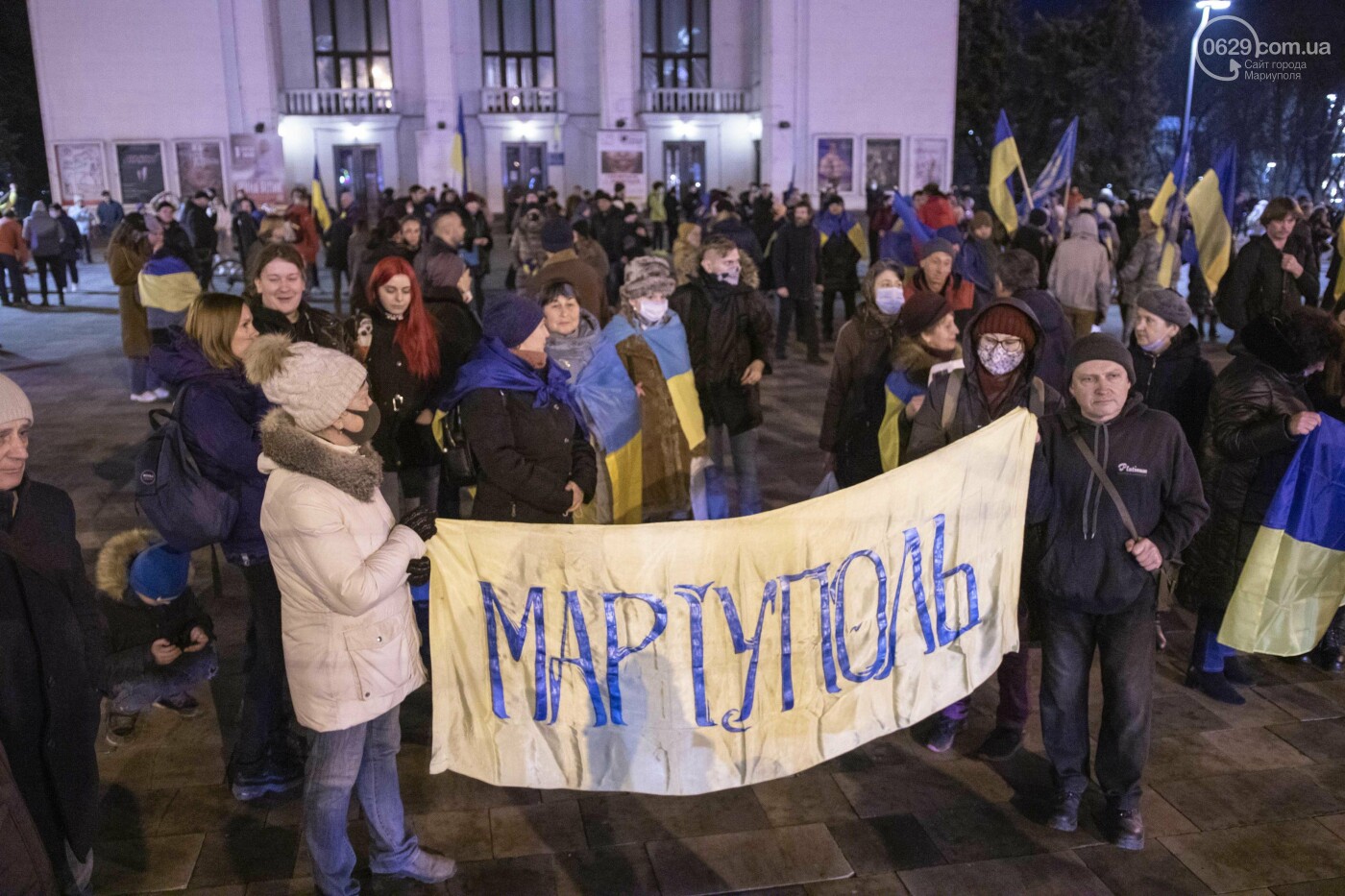 Увечері 22 лютого понад тисячу маріупольців вийшли на патріотичну акцію проти вторгнення Росії з гаслами "Маріуполь – це Україна".
