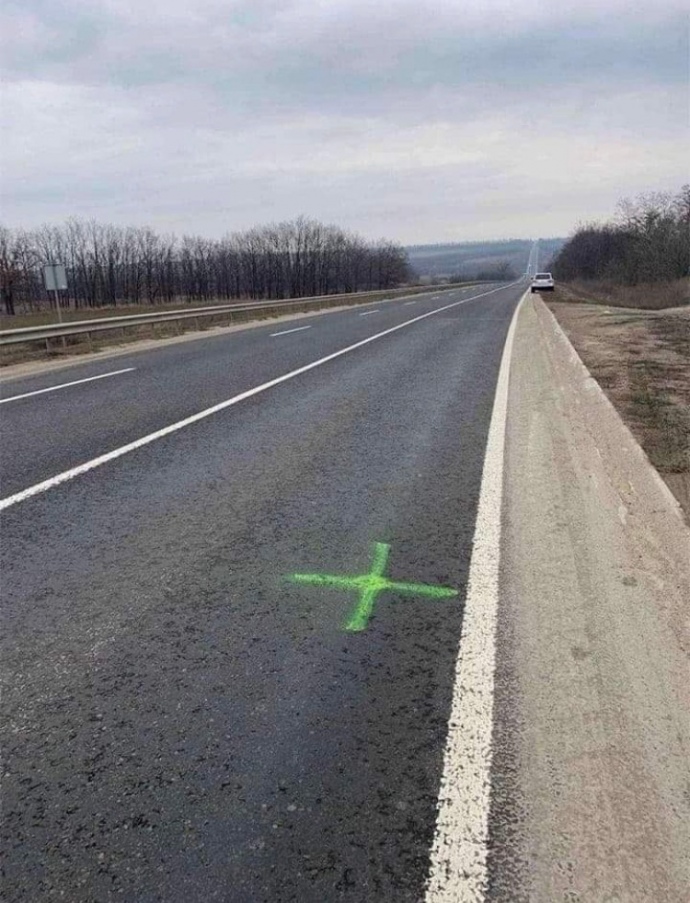 Дослівно СБУ: "Важливо: якщо ви побачили такі чи подібні мітки, нанесені люмінесцентною чи світловідбиваючою фарбою, визначте місце, де вони знаходяться.