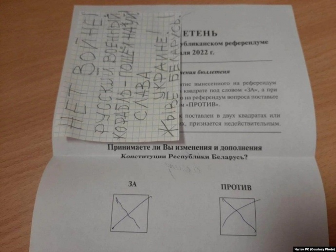 На виборчих дільницях на референдумі білоруси протестували проти вторгнення Росії в Україну, до якого приєднався Олександр Лукашенко, людей затримували.