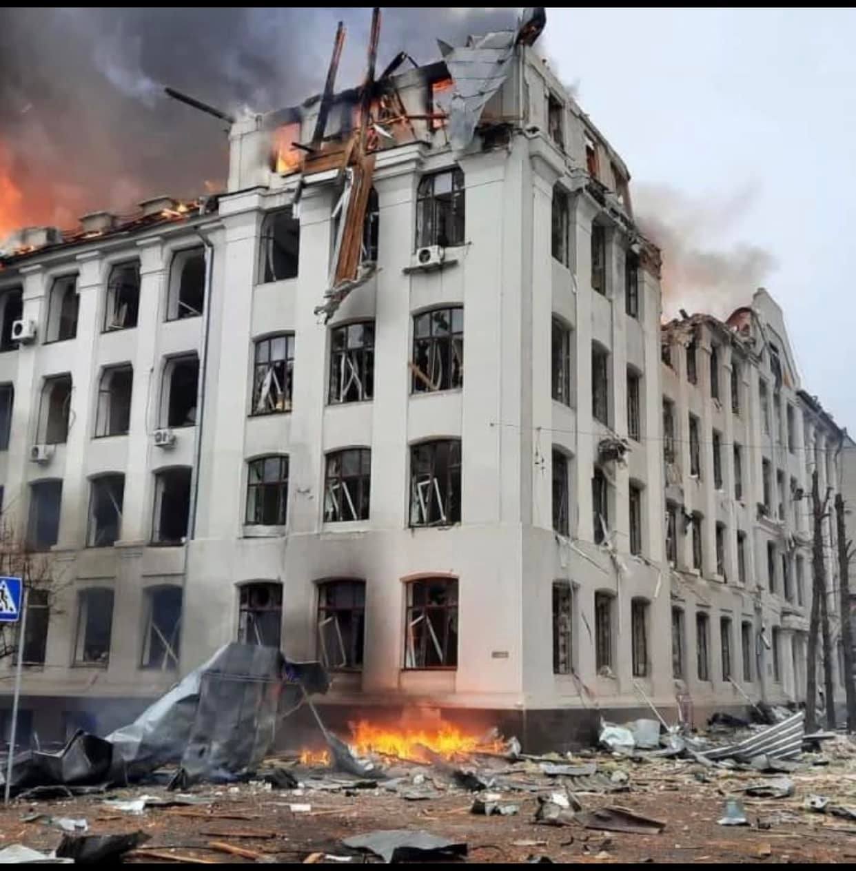 Трохи раніше окупанти розтрощили будівлю економічного факультету Університету імені Каразіна на вулиці Мироносицькій.