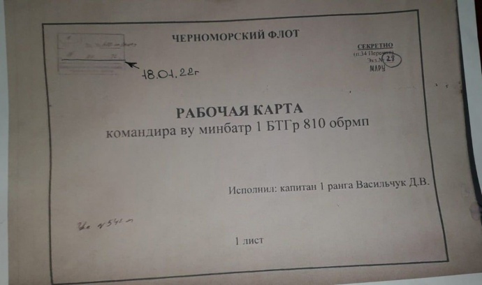 Українці заволоділи планувальними документами одного з підрозділів батальйонної тактичної групи 810-ї окремої бригади морської піхоти Чорноморського Флоту Російської Федерації щодо війни проти України, який було затверджено 18 січня.