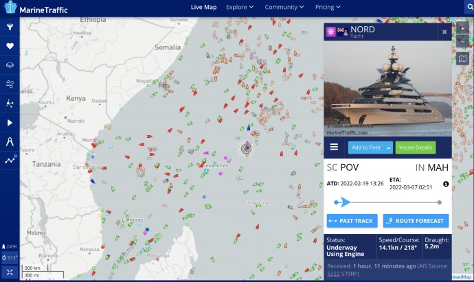Найбагатший російський олігарх Олексій Мордашов сховав свою 142-метрову яхту Nord біля Сейшельських островів.