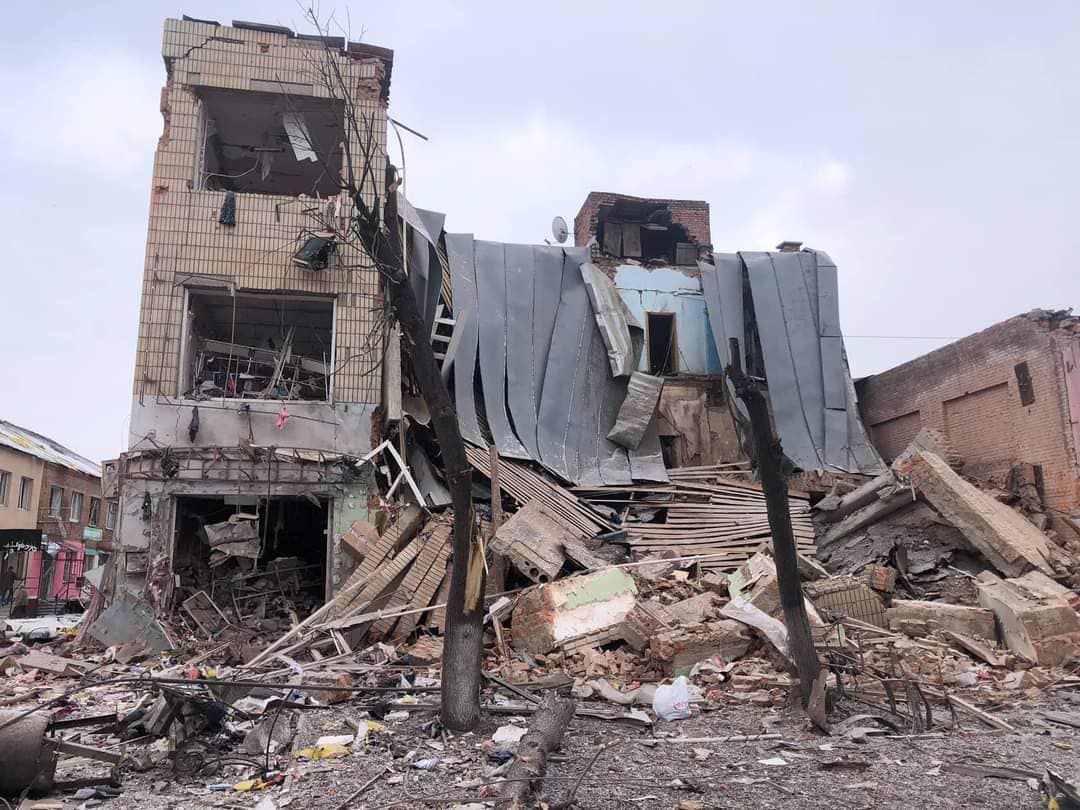 Деталі: Окрім того, пошкоджено будiвлі мicької ради, будинку культури, "Унiвермагу", житлові будинки та залізничний вокзал.