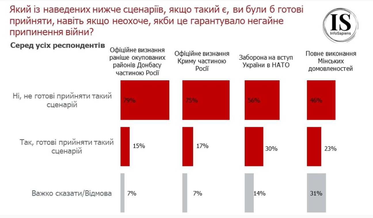 Українці не згодні на умови Путіна, особливо щодо Криму й Донбасу – опитування