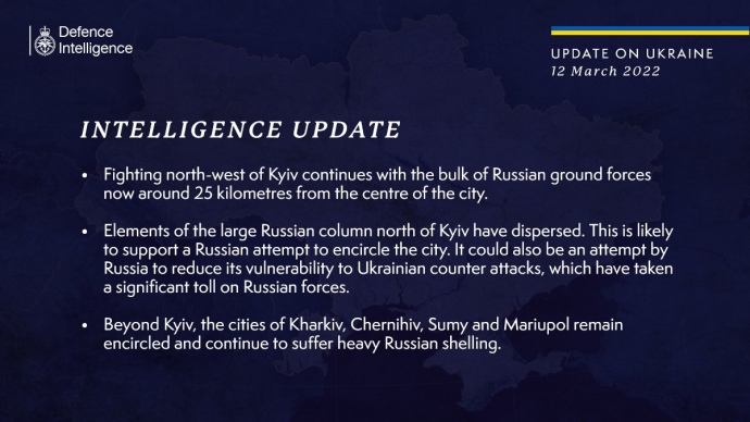 Деталі: За даними британців, частини великої російської колони на північ від Києва розосередилися. Це може свідчити про спробу росіян оточити місто.