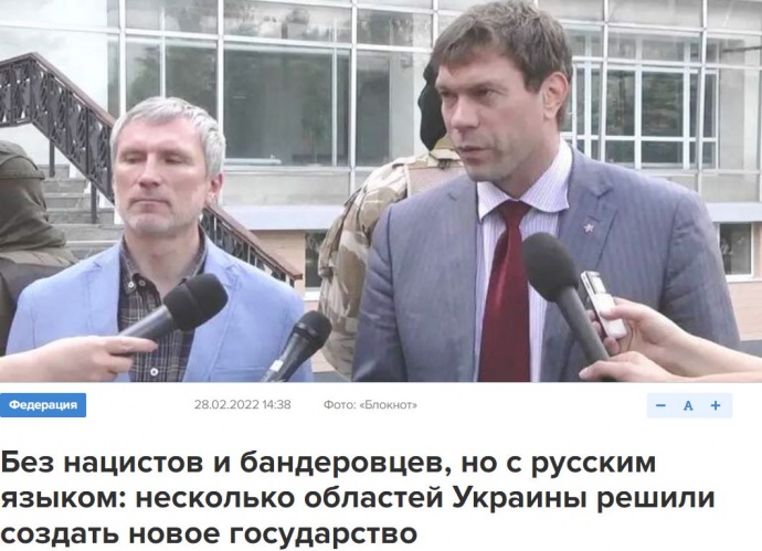 Деякі сайти окупантів 27 лютого почали публікувати новини про начебто здачу українських регіонів і створення псевдоформування "Федеративна республіка Україна".