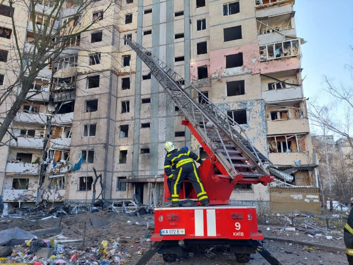 У Києві внаслідок потрапляння уламків снаряду виникла пожежа у житловому будинку.
