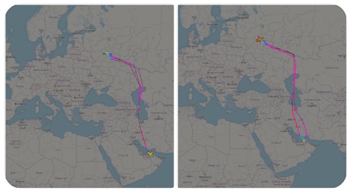 Деталі: До міста Дубай цей літак, що коштує близько 60 млн доларів, вилетів 20 березня вранці. Тепер він вже прямує назад до РФ.