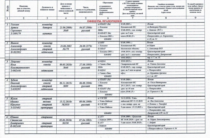 У переліку - 32 прізвища офіцерів і солдатів із персональними даними та адресами. З повним списком можна ознайомитись на сайті.