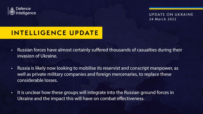 Джерело: останні новини британської оборонної розвідки щодо ситуації в Україні станом на 24 березня 2022 року
