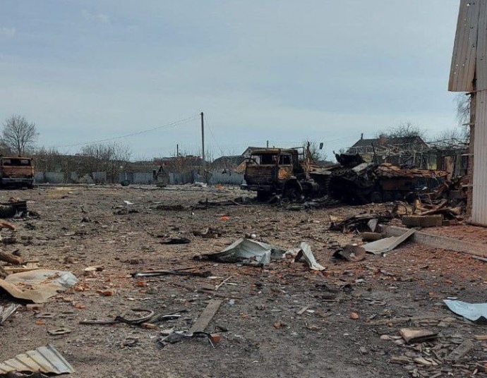 Залишки техніки окупантів у Тростянці, фото Генштабу ЗСУ