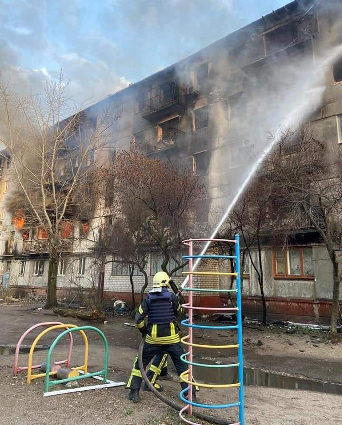 Пряма мова Гайдая: "Тільки росіянам відомо, який саме стратегічний об’єкт вони хотіли знищити в цьому районі – там розташовані лише житлові будинки. Однак ворог за останній тиждень тричі бив по цьому кварталу і усі три рази влучав в дім, де проживали звичайні сєвєродончани. Кожного разу бійці ДСНС гасили полум’я і рятували тих, хто там ще залишався. Бо наразі власного дому в цих людей вже практично немає".