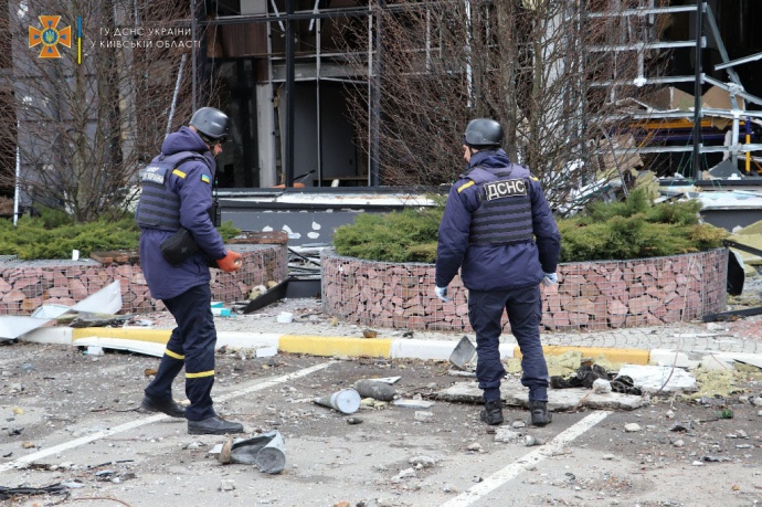 Дослівно: "Щодня піротехніки ДСНС Київщини очищують території, дороги, будинки та інфраструктурні об'єкти від боєприпасів, що залишили після свого відступу окупанти".