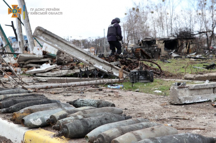 У Бучі та інших містах Київської області знаходять багато боєприпасів, які не розірвалися, розмінування триває.