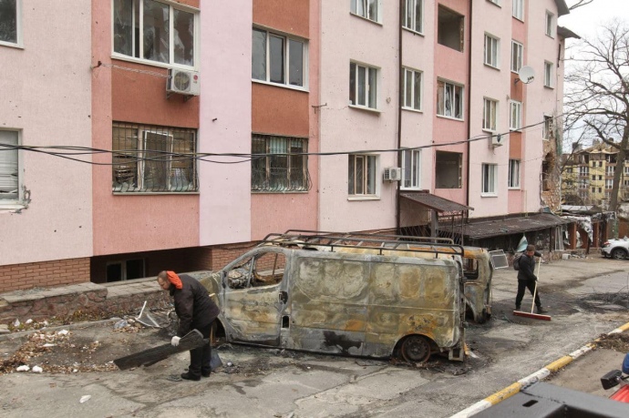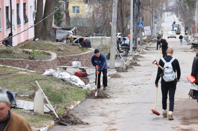 Спочатку наведемо лад на дорогах, щоб вони були проїзними, а далі будемо розбирати завали будинків. Дякую усім, хто сьогодні допомагав відновлювати наш Ірпінь! Завтра продовжимо".