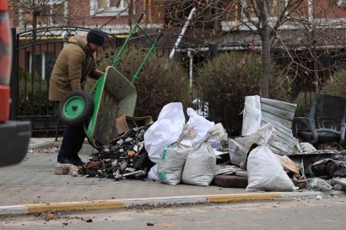 Пряма мова Маркушина: "Сьогодні наші комунальні служби з допомогою майже трьох сотень волонтерів і 20 одиниць техніки прибрали близько 20% вулиць Ірпеня.