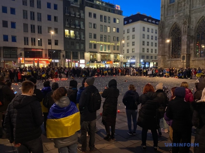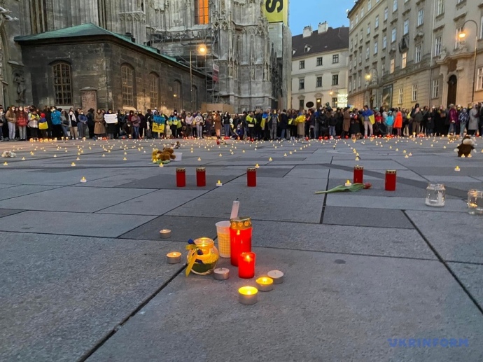 Деталі: На площі Штефанплатц біля Собору святого Стефана у Відні у неділю ввечері відбулася акція пам’яті жертв російського вторгнення в Україну.