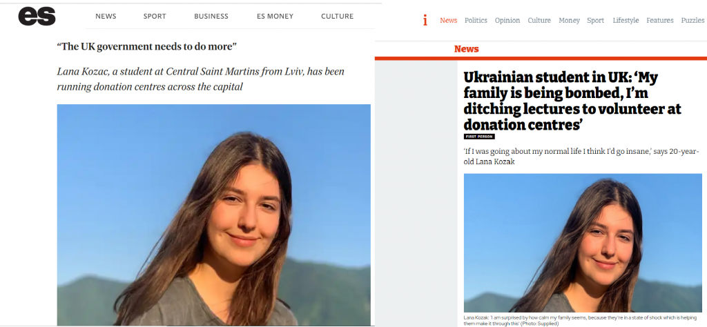 Лана розповіла, що вона пропускала заняття в престижному університеті University of the Arts London (Університет мистецтв Лондона), аби допомогти з розміщенням центрів для збору пожертв українцям. Вона закликала уряд Великої Британії робити більше для допомоги звичайним українцям.