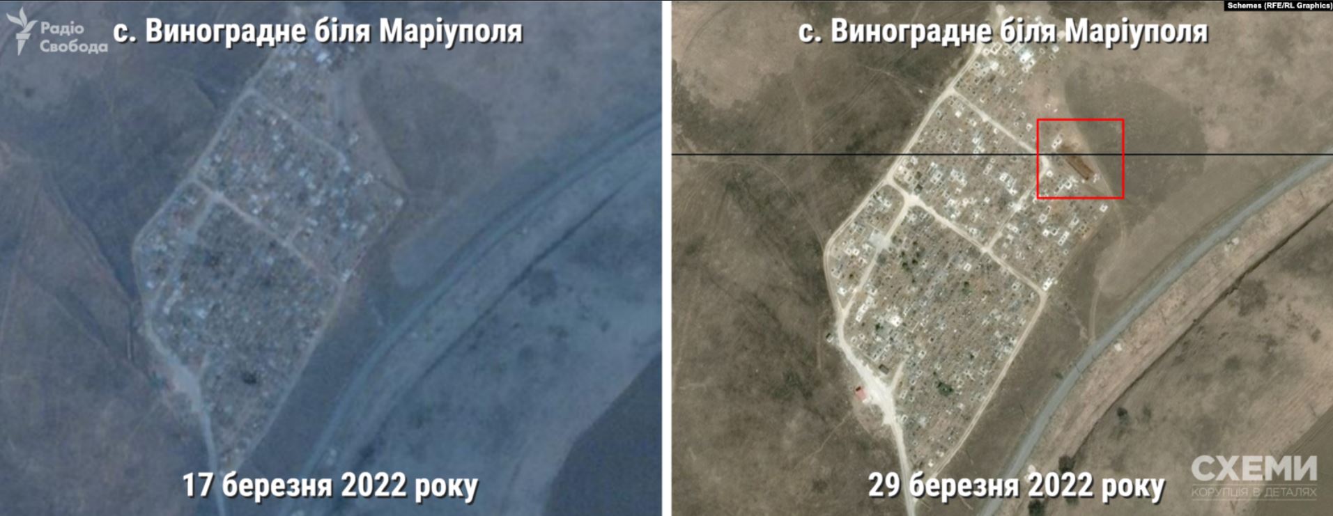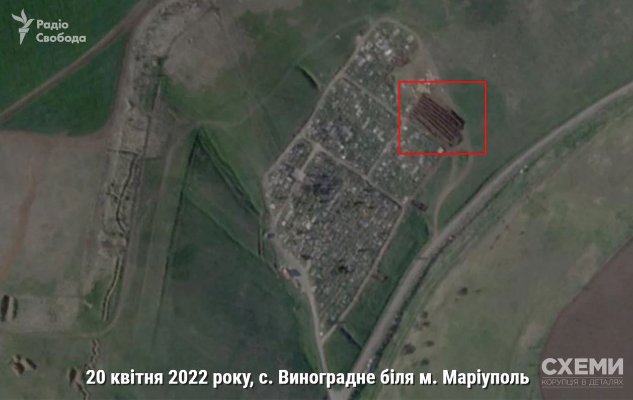 А вже 22 квітня з'явилася інформація про ще одну таку могилу на схід від Маріуполя, у селі Виноградне.