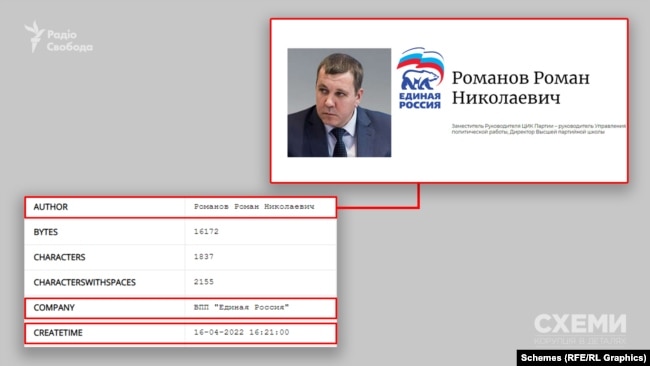 Через метадані документу можна також встановити, до якої організації належить комп’ютер, на якому його було створено. Це – "ВПП "Единая Россия".
