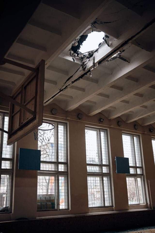 Деталі: Голова області показав фото пошкодженої школи і закликав мешканців якомога скоріше евакуюватися – навіть ритуальним транспортом.