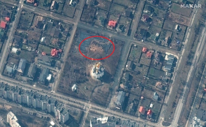 Maxar Technologies заявила, що перші ознаки розкопок братської могили було помічено 10 березня.