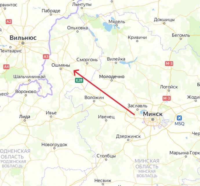 06:00. A column of about 30 military vehicles of the Belarusian Armed Forces was moving from Minsk towards the Ashmiany district / Lithuanian border along the M7 highway.