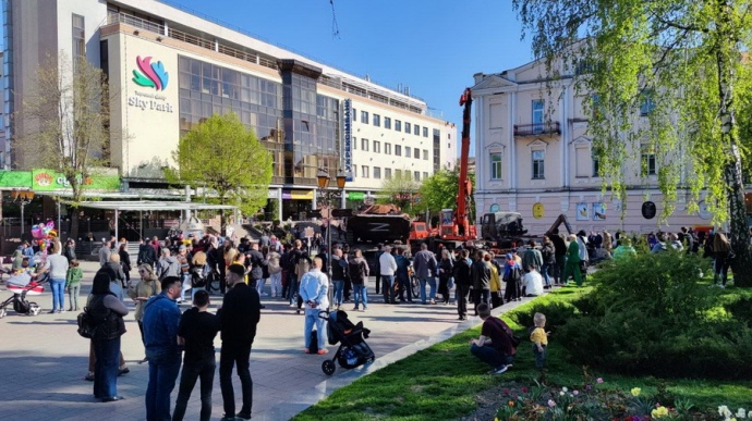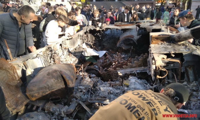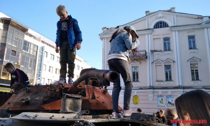 У центрі Вінниці виставили розбиту російську техніку з намальованою літерою Z, пізніше діти знайшли у ній бойовий пістолет.