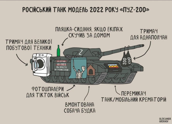 Він запропонував рсоійському режиму на честь "Дня неПобеды" наштампувати нові медальки та затвердити нову модель танка. Ескізи додаються.