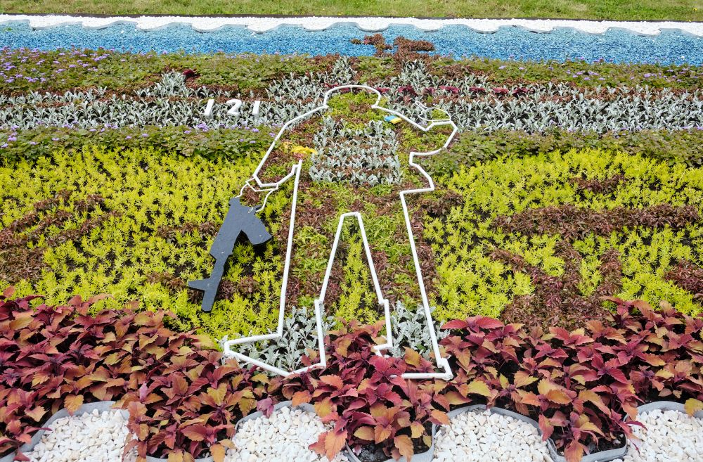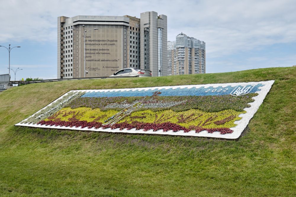 У кожному районі Києва з’явиться квіткова композиція, що символізуватиме незламний дух українського народу під час війни, першою такою композицією стала клумба у вигляді марки з зображенням українського військового на фоні російського корабля.