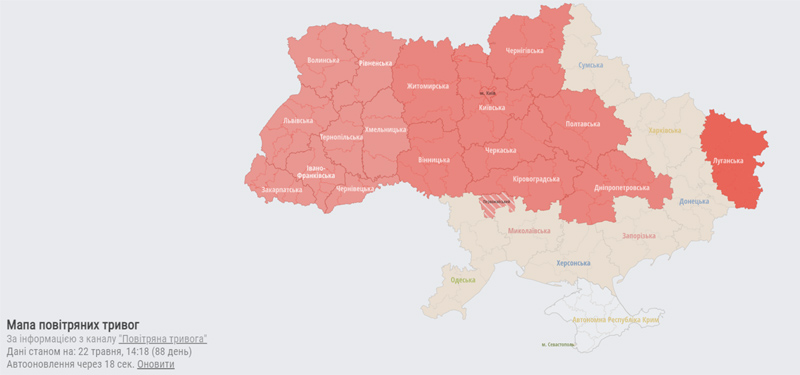 Майже по всій Україні, крім східних і південних областей, оголосили повітряну тривогу, у столиці парламентарі зупинили засідання Верховної ради і пішли в укриття.
